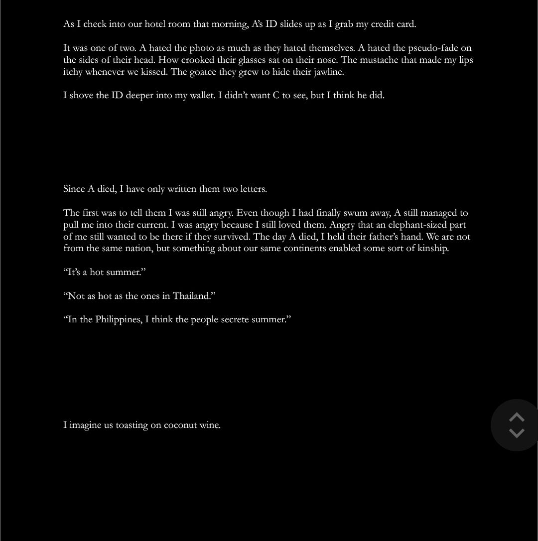 MT Vallarta (they/them) is a queer, non-binary, disabled, Filipinx poet and Assistant Professor of Ethnic Studies at Cal Poly San Luis Obispo. Their debut poetry collection, What You Refuse to Remember, won the 2022 Laureate Prize from Small Harbor Publishing. They have received fellowships from Lambda Literary, Kundíman, the Martha’s Vineyard Institute for Creative Writing, and others. Their scholarship and creative writing can be found in Amerasia Journal, The Asian American Literary Review, Shō, Nat. Brut, Apogee, and elsewhere. Find them at mtvallarta.com and IG: @__melkteaa.